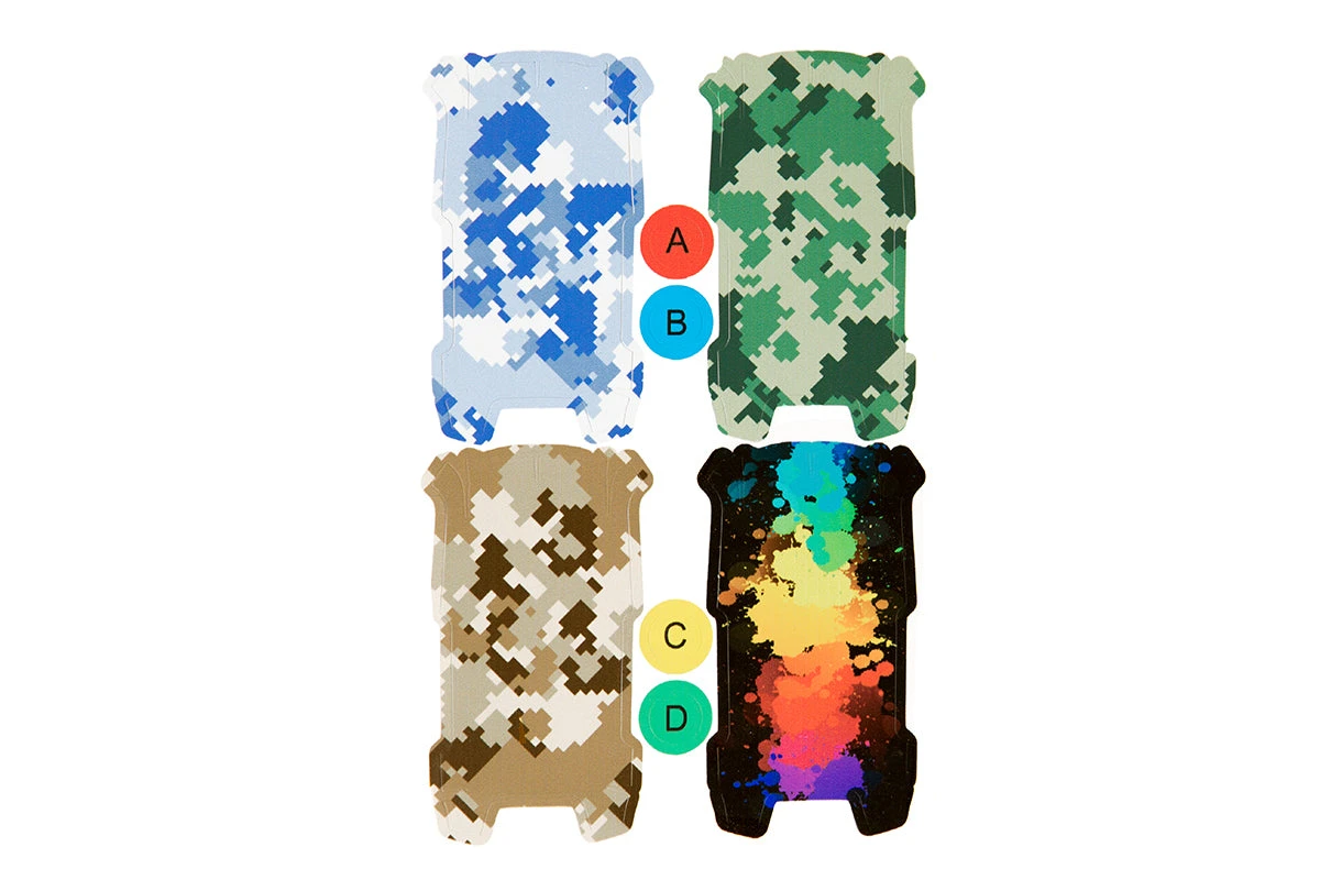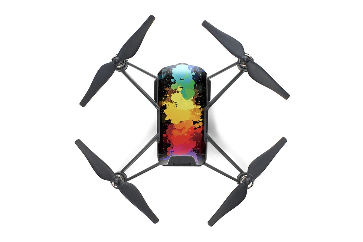 The PGYTECH Skins for Spark Quadcopter from DJI come in a pack of four, featuring Transparent, Colorful Splash, Feathers, and Flower Splash designs. Made from durable PVC, these skins provide effective heat dissipation while protecting the drone from water and cosmetic damage. They are easy to install and include a cleaning kit for added convenience.